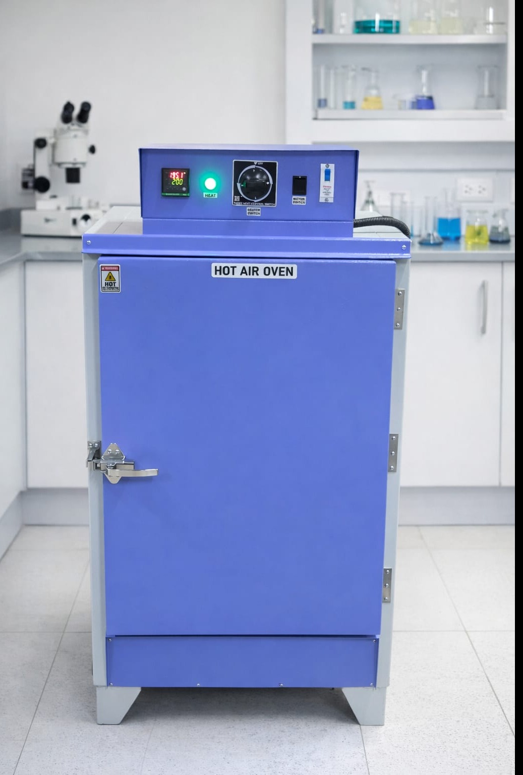 A hot air oven for laboratory use is a device that uses dry heat to sterilize instruments and materials. Unlike autoclaves, it does not use steam, making it ideal for moisture-sensitive items.